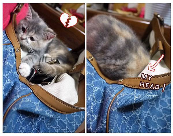 難得揹,卻被咪醬當窩了!磨蹭磨蹭就算哩~還不時抓....邊邊的皮革!